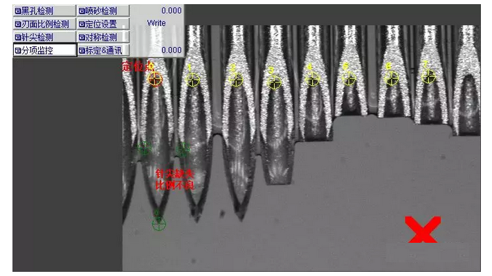 小結:基于機器視覺技術的一次性注射器針尖外觀檢測系統已成功投入到生產流水線上使用。運行數據顯示,該系統檢測時間范圍(單次“拍照+處理”總時間)在100-120ms,無漏檢;誤檢率不超過千分之五。